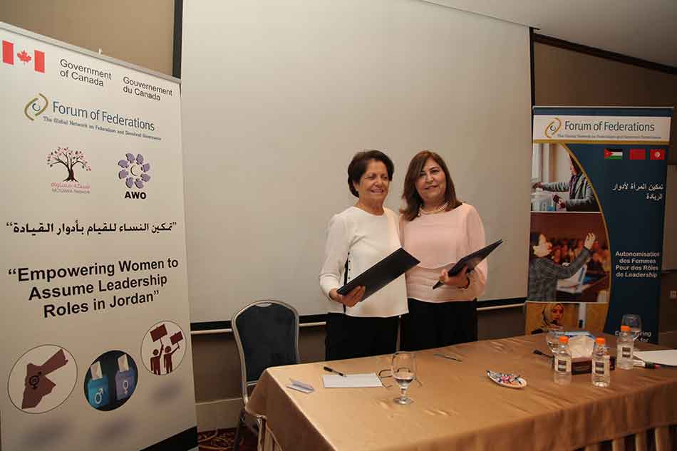 The launch was attended by the management of Arab Women Organization of Jordan – AWO, Forum of Federations MENA team Sawsan Tawil and Haneen Mraiyan, a representative from Moppa https://www.facebook.com/moppa.gov.jo/?fref=mentions and members of municipalities from four governorates.