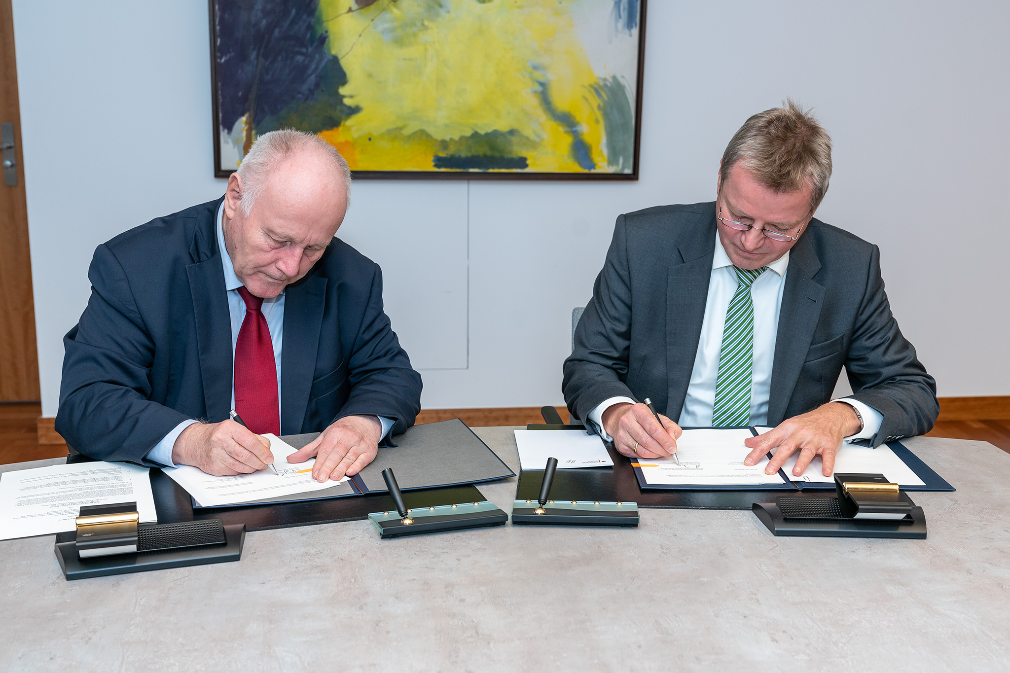 Dr. Helmut Teichmann, Deputy Minister (“State Secretary”) at the Federal Ministry of the Interior, Building and Community, and the Chairman of the Forum of Federations, Prof. Dr. Georg Milbradt, former Premier (of Saxony), signed the renewal of Germany’s partnership with the Forum of Federations .