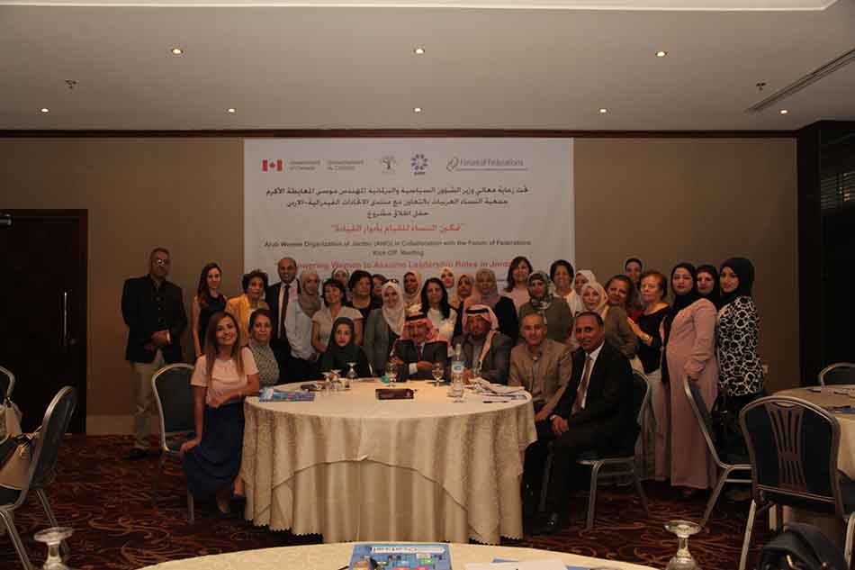 The launch was attended by the management of Arab Women Organization of Jordan – AWO, Forum of Federations MENA team Sawsan Tawil and Haneen Mraiyan, a representative from Moppa https://www.facebook.com/moppa.gov.jo/?fref=mentions and members of municipalities from four governorates.