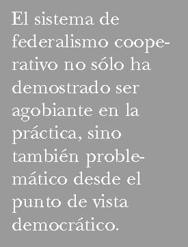 Sin embargo, el sistema de federalismo cooperativo no sólo ha demostrado ser agobiante en la práctica, sino también problemático desde el punto de vista democrático. Si todo el mundo es responsable de todo, el resultado es que nadie se hace responsable de nada. Por tal motivo, se ha discutido mucho sobre el establecimiento de reformas que den mayor transparencia a la toma de decisiones y a la rendición de cuentas, y sobre